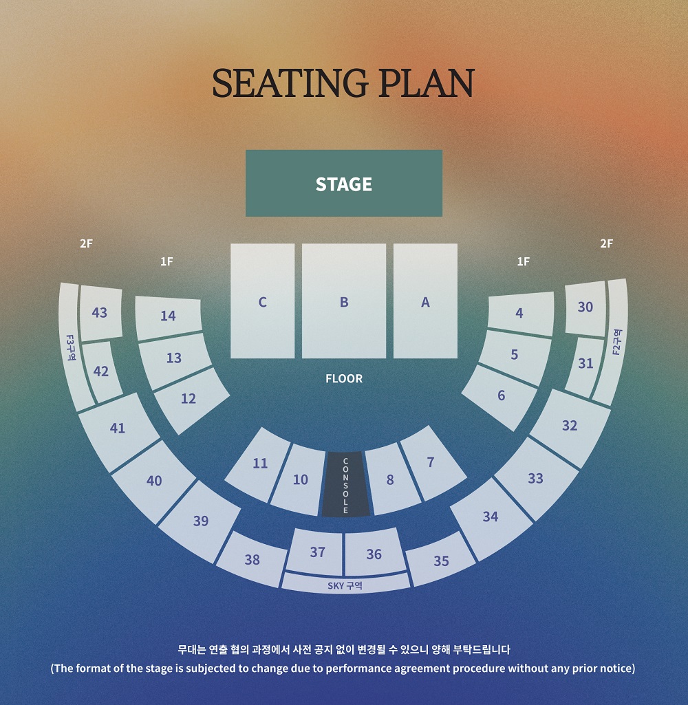 * 추가 오픈좌석 : 1층 4, 14구역 / 2층 30, 43, F2, F3구역