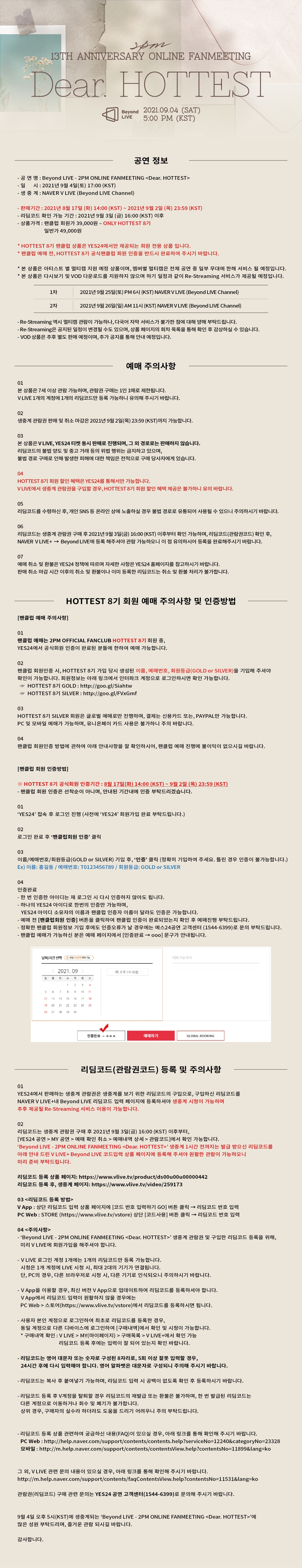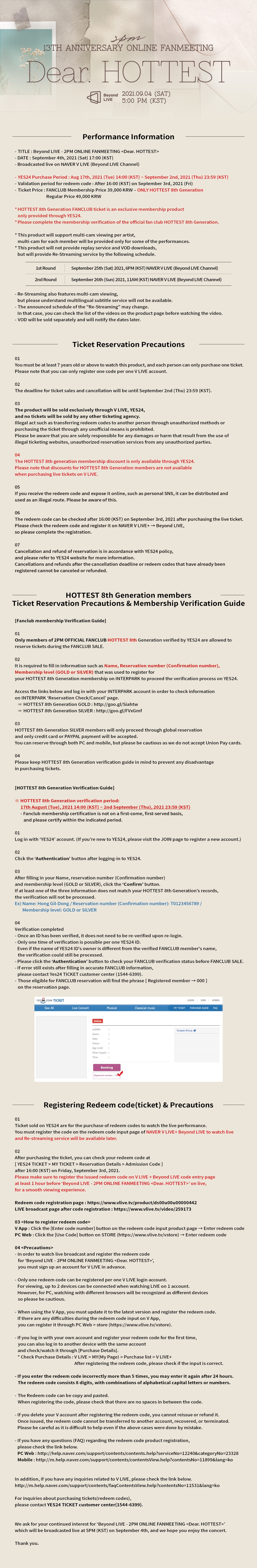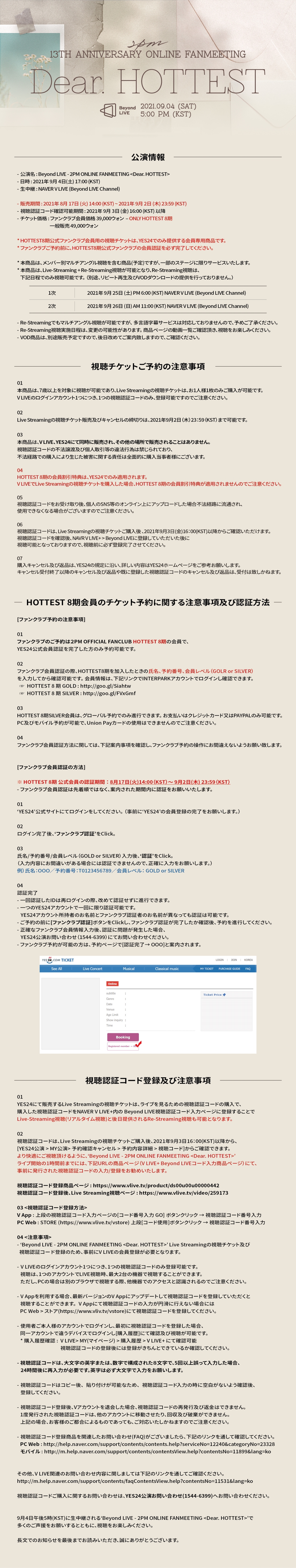 Beyond LIVE - 2PM ONLINE FANMEETING <Dear. HOTTEST> 예매 상세 안내/TICKET DETAIL NOTICE (KR/EN/JP)
