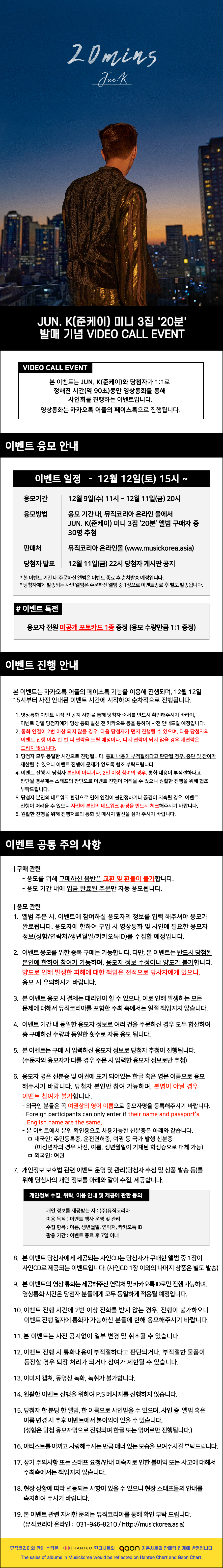 JUN. K (준케이) 3rd MINI ALBUM <20분> 발매 기념 VIDEO CALL EVENT [뮤직코리아]